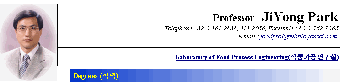 Ph.D. Food Science and Technology, Texas A&M University, U.S.A. 1991 M.Sc. Food Engineering, University of Massachusetts, Amherst, U.S.A. 1982 B.Sc. Food Engineering, Yonsei University, Korea 1980